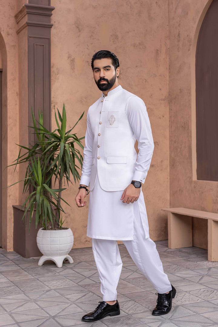 A TIMELESS WINTER FABRIC WHICH MAKES YOU WARM ALL DAY ALONG WITH INTRIGATE FRONT HAND MADE MOTIVE FOR THE WAISTCOAT POCKET AND CAUSAL SHALWAR KAMEEZ FABRIC. DESIGN FOR WEDDINGS.FESTIVE CELEBRATION AND FORMAL OCCASIONS.