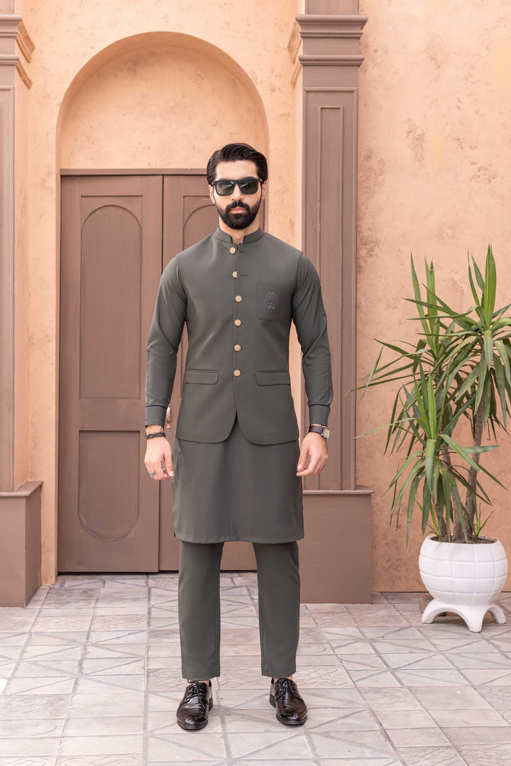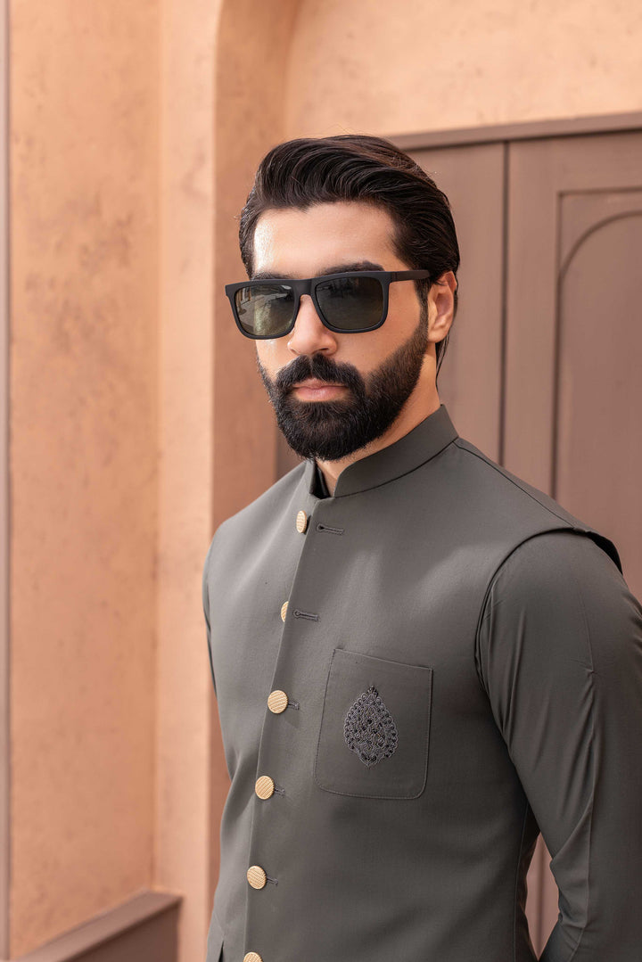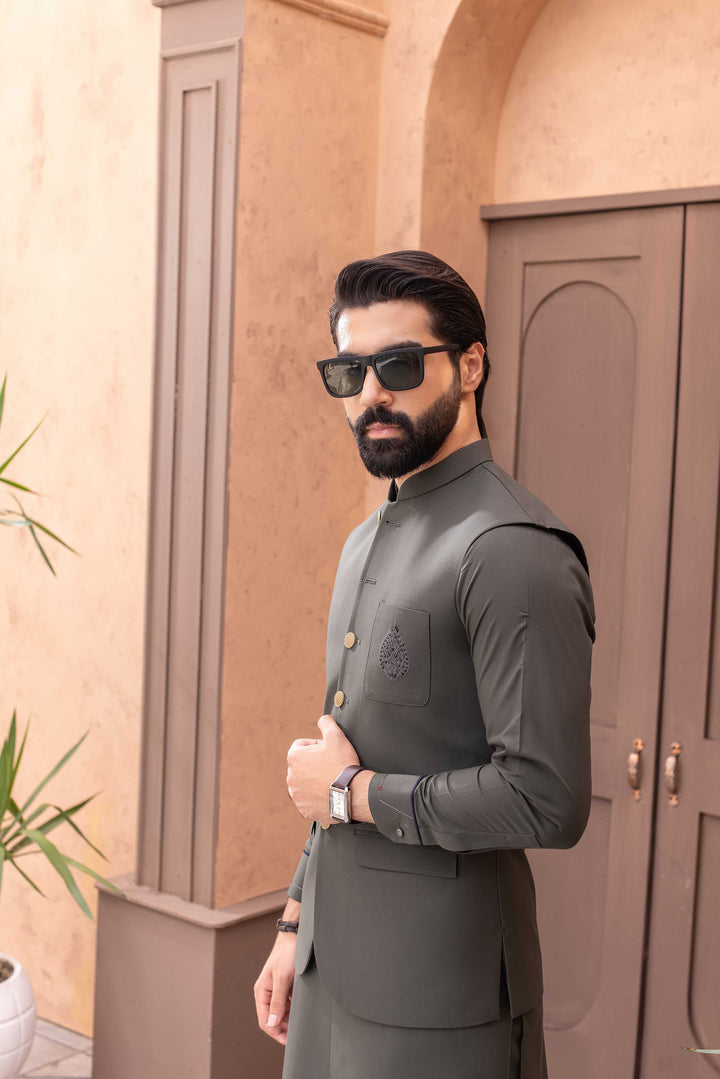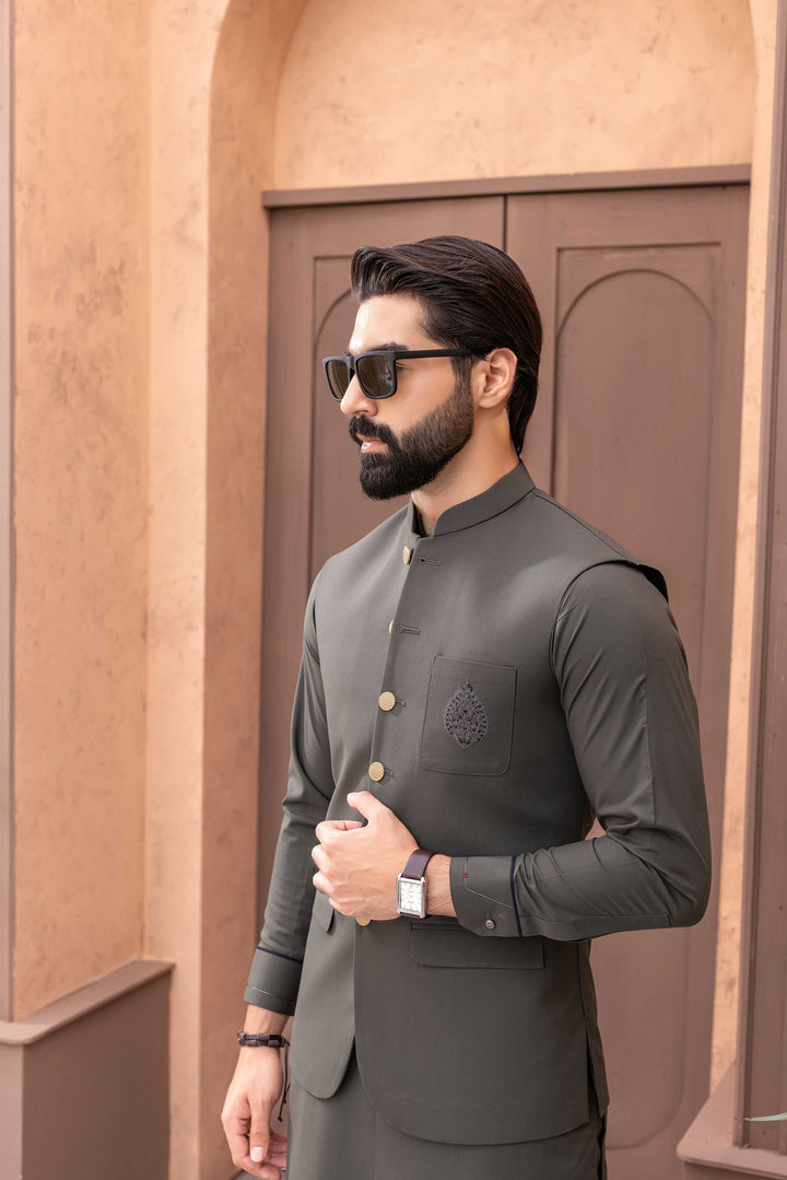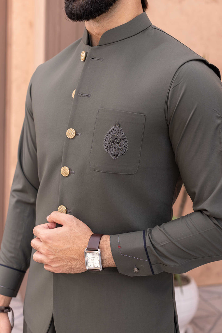 A TIMELESS WINTER FABRIC WHICH MAKES YOU WARM ALL DAY ALONG WITH INTRIGATE FRONT HAND MADE MOTIVE FOR THE WAISTCOAT POCKET AND CAUSAL SHALWAR KAMEEZ FABRIC. DESIGN FOR WEDDINGS.FESTIVE CELEBRATION AND FORMAL OCCASIONS.